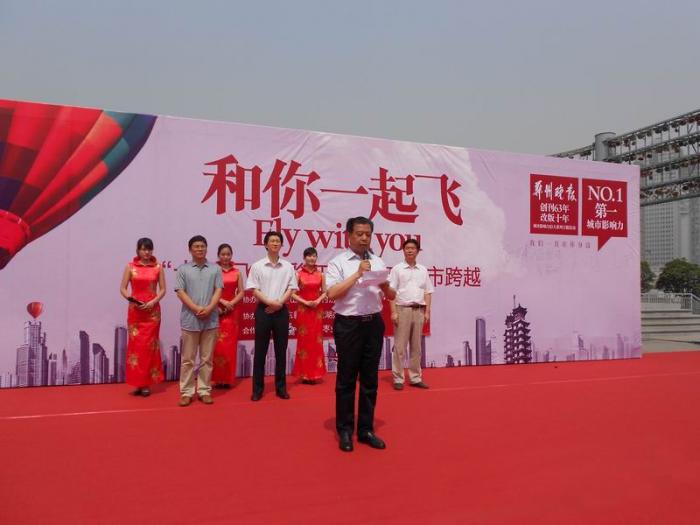 郑州晚报总编辑石大东出席放飞仪式,在致辞中表达了对两家单位的美好祝愿。
